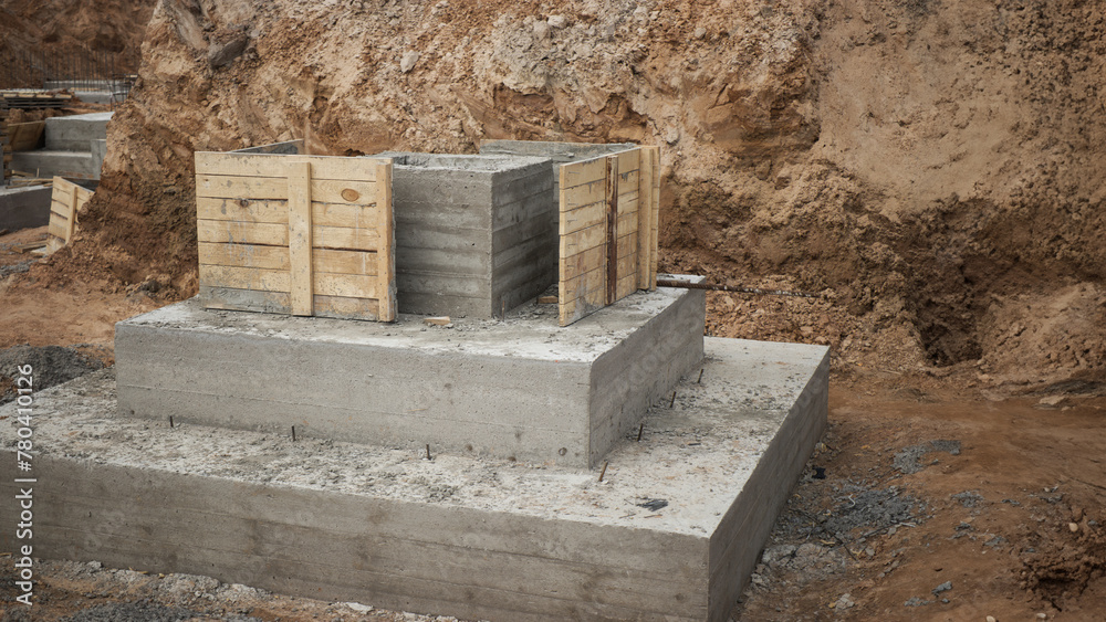 A pile of dirt nestled next to a pile of cement, awaiting their transformation into reinforced concrete foundations at a construction site