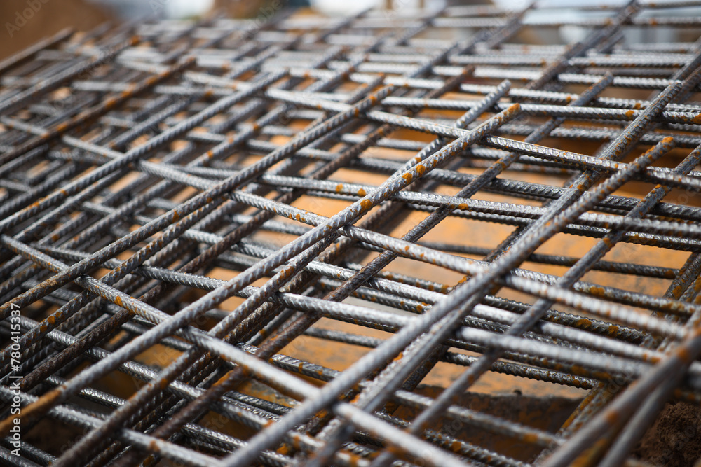 Reinforcing mesh at the construction site. Reinforcing cages for foundations and grillages. Close-up. Melaconstructions in modern construction.