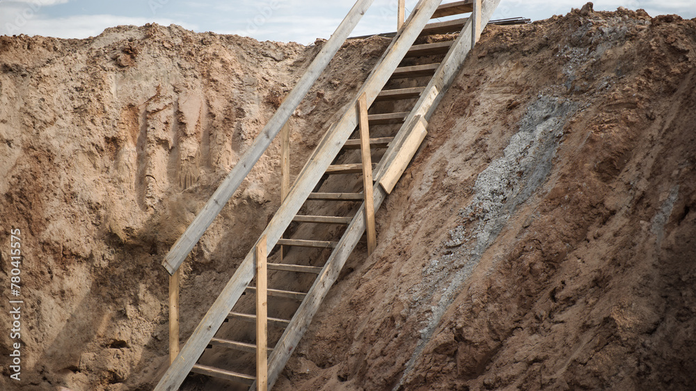 A ladder ascends a steep hill against a serene sky background, symbolizing the infinite pursuit of growth and progress