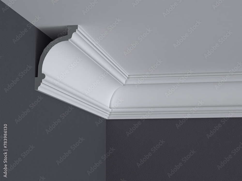 The ceiling cornice is white. 3D Render.