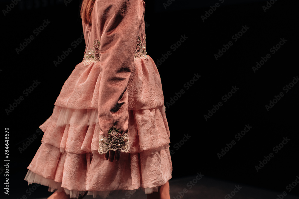 Cute children's Vintage Pink Ruffle Long Sleeve Dress. Elegant fashion for girls