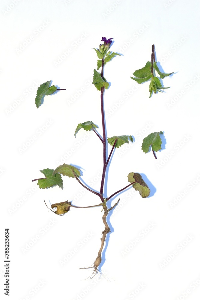 Herbarium. Purple lily grass, flowers, stem and root system.
