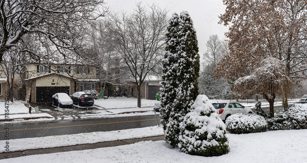 Burlington street covered with snow during a snowy day, Ontario,Canada