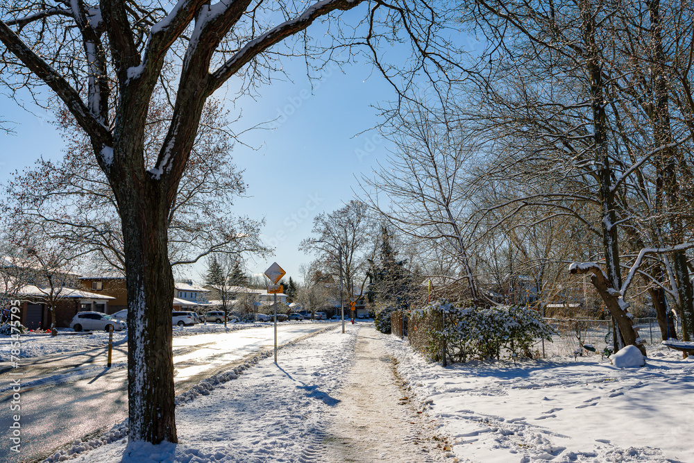 Burlington street covered with snow on a sunny day, Ontario,Canada