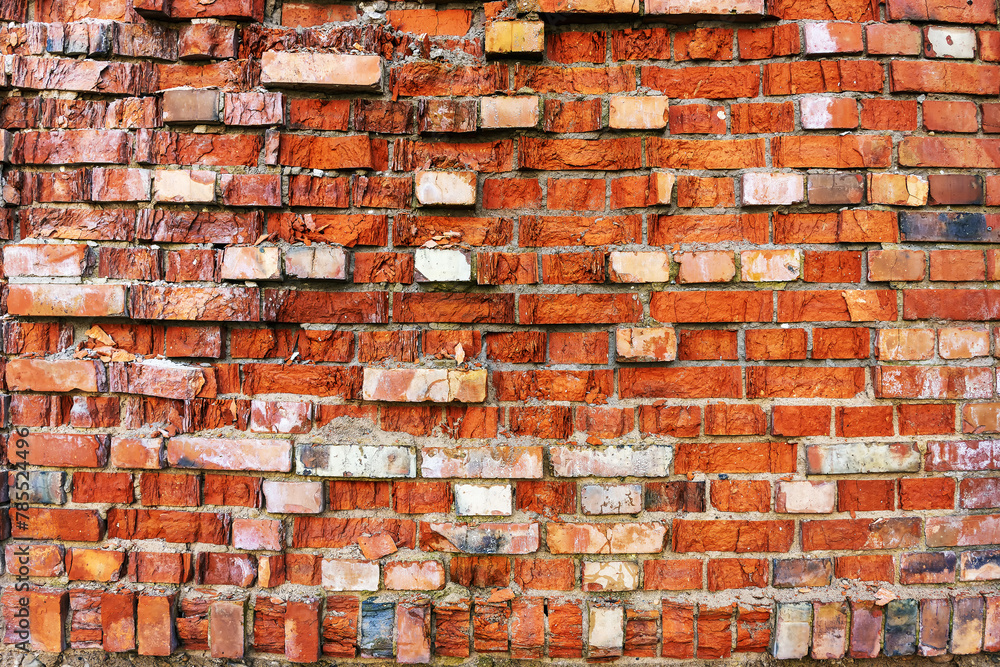 Old crumbling red brick wall as background
