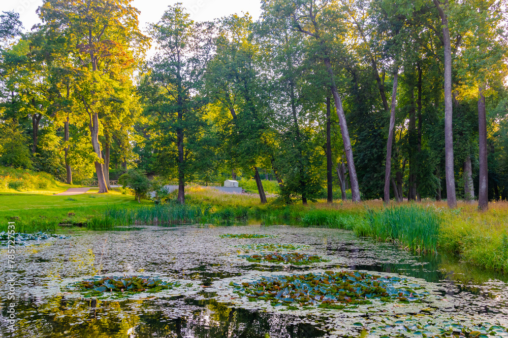 der Park Aleksandriya in St. Petersburg in Russland liegt herrlich am baltischen Meer mit vielen Wiesen und Blumen