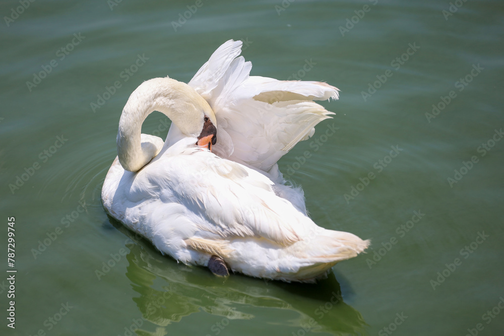 Close up White swan is cute in river