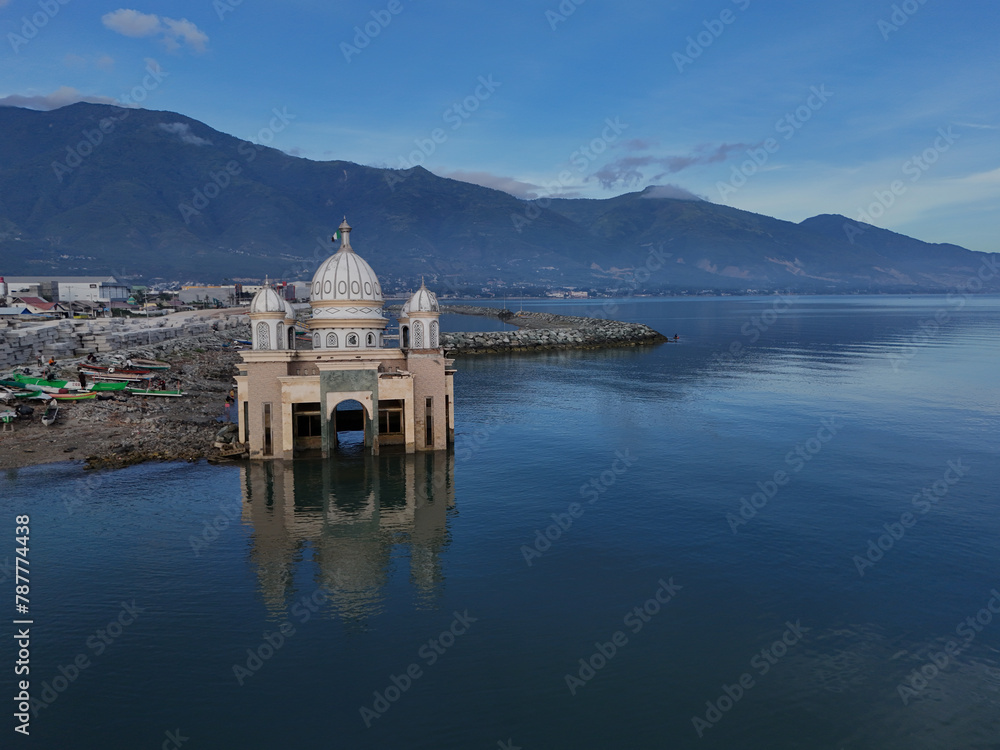 The arqam Baburahman Mosque in Palu Bay, Palu City, Central Sulawesi, Indonesia. This mosque was affected by the tsunami and earthquake that occurred in 2018.