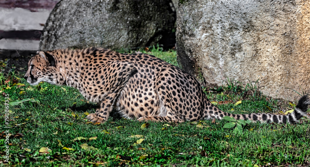 Cheetah preparing to jump. Latin name - Acinonyx jubatus