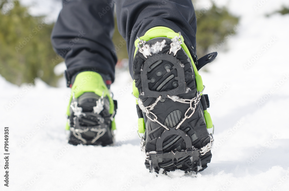 hiking boots with equipment for ice