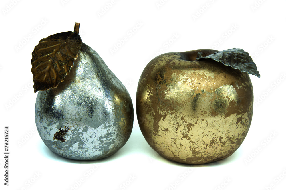 Metallic apple and pear