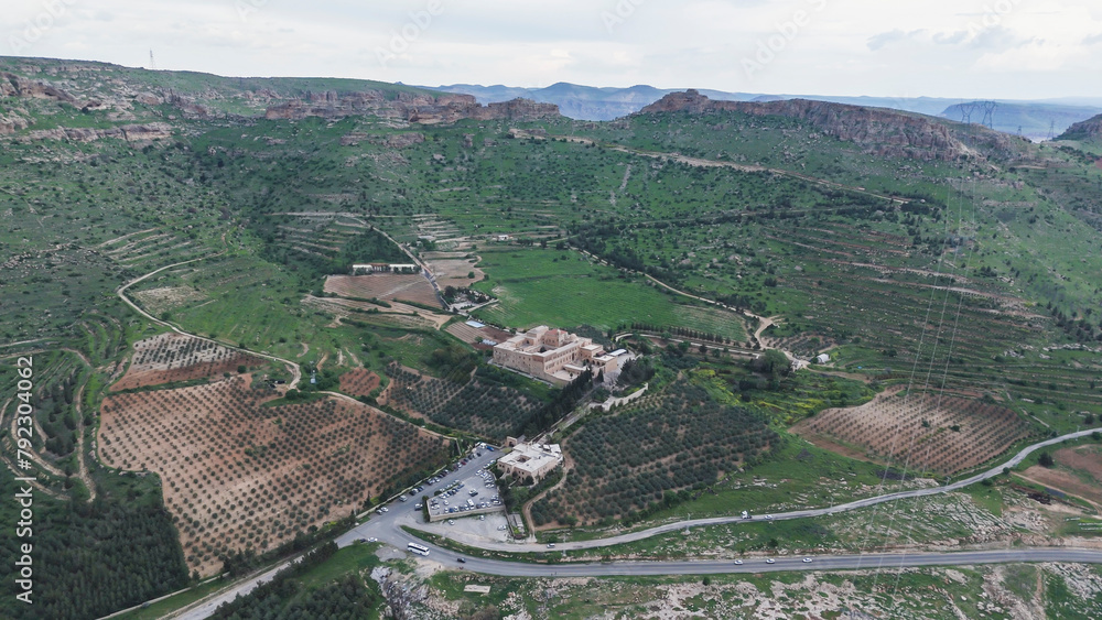 Mardin Deyrulzafaran Monastery stone building taken from various angles drone aerial photographs