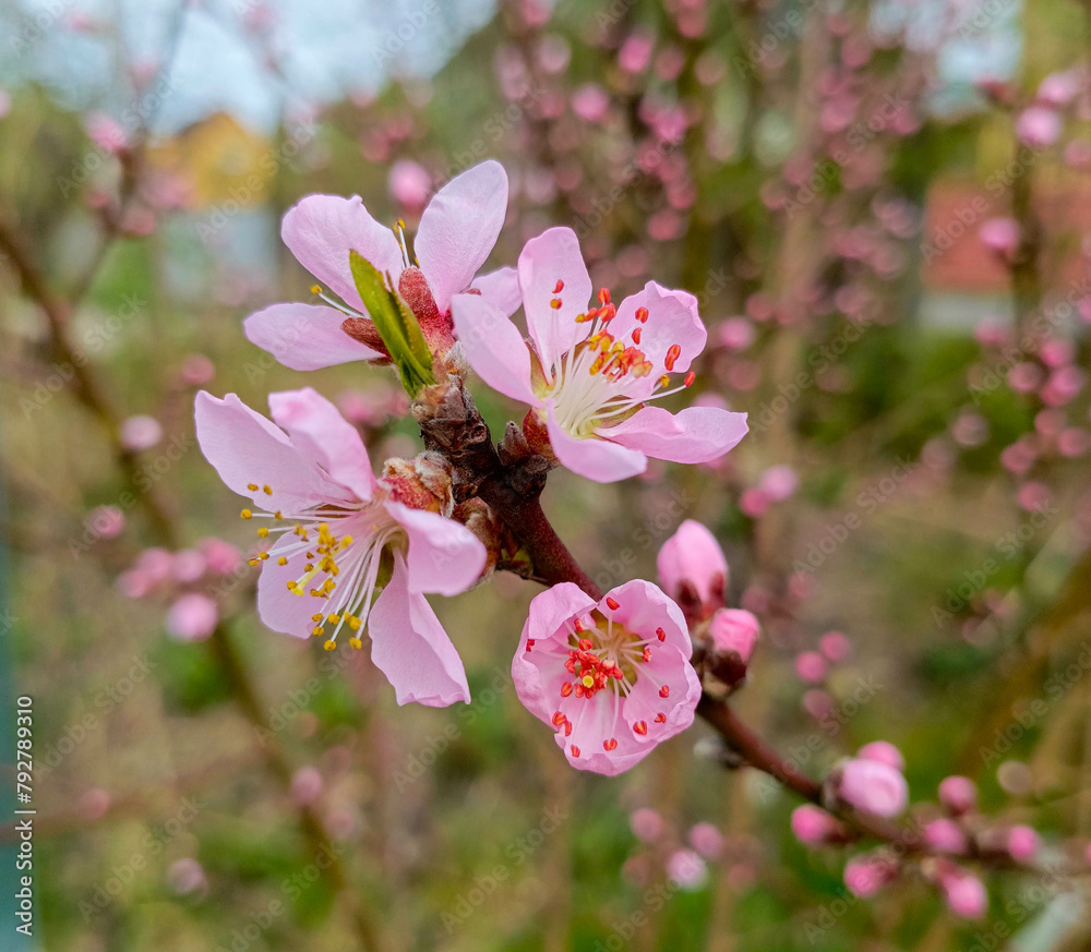 pink peach flowers in april
