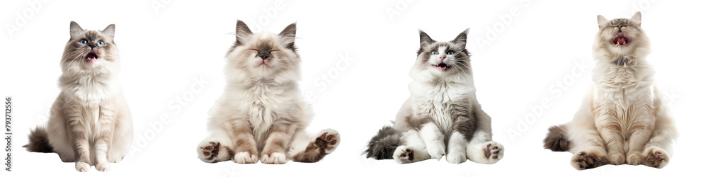 Cat PNG set - sitting photo of happy Ragdoll isolated transparent background