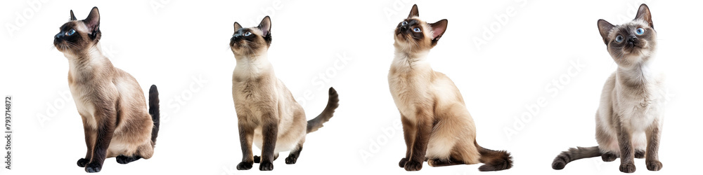 Cat PNG set - standing photo of happy siamese cat isolated transparent background