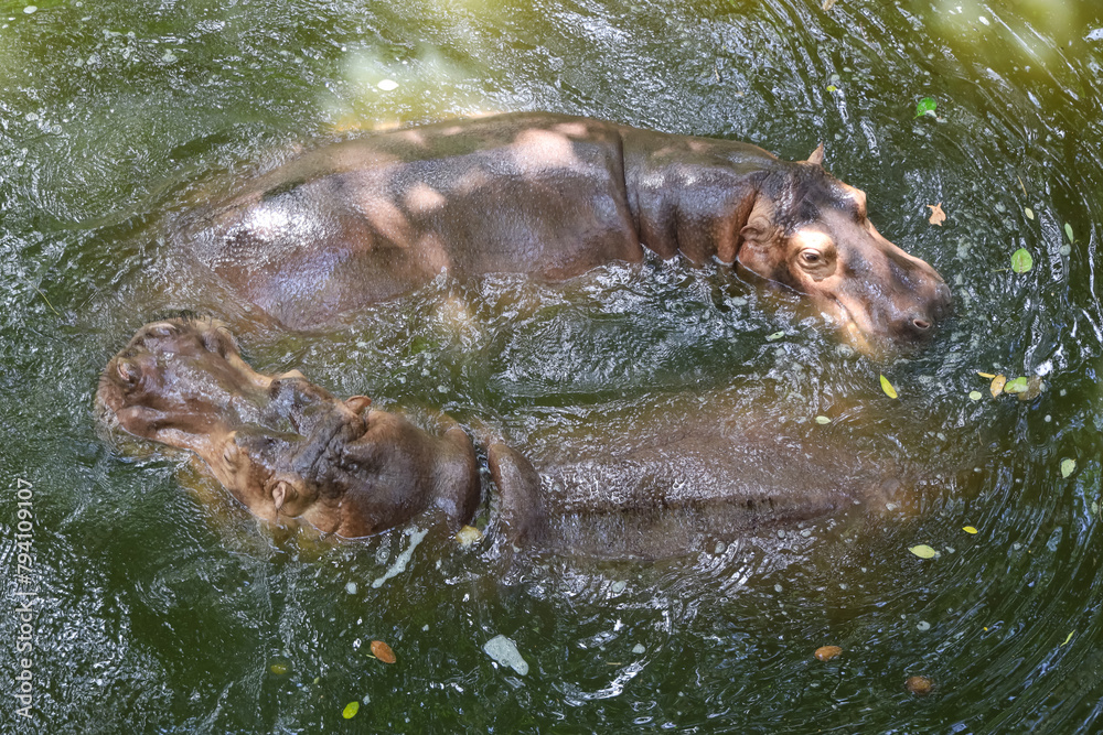 The hippopotamus is swim and rest In the river
