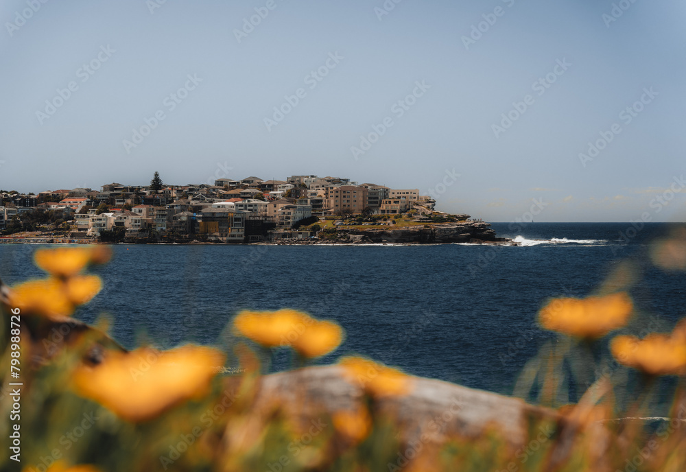 Landscape nature of cliff with ocean at Royal national park coastal walk in Sydney NSW Australia - Nature travel track from Wattamolla. Travel outdoor and Picnic Activity