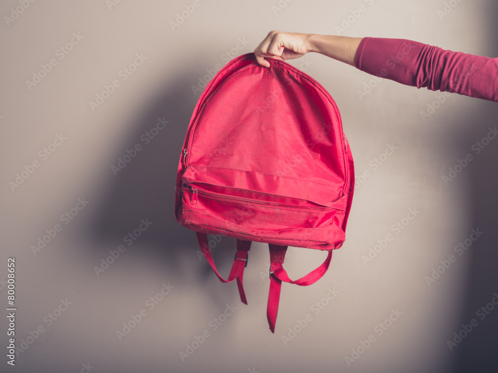 Female hand holding a rucksack