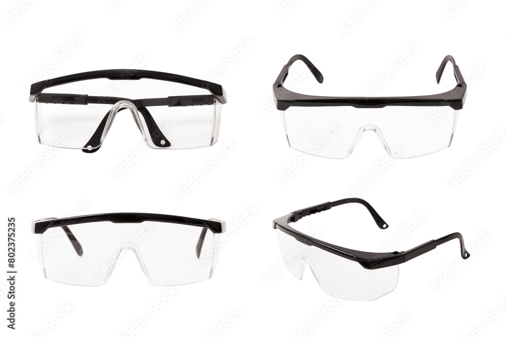 Protective black plastic eyeglasses with transparent background