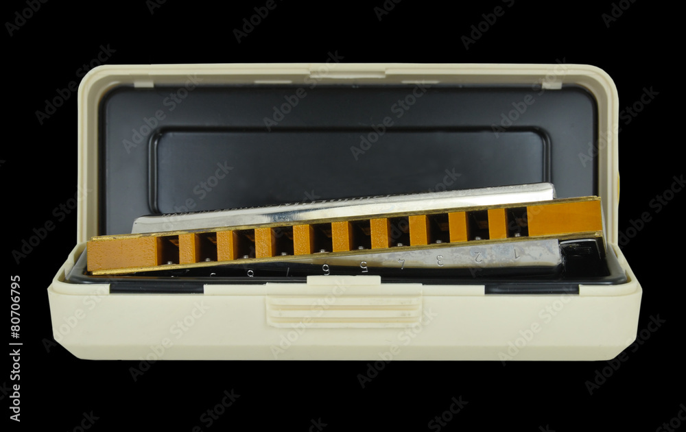 Blues Harp & Case isolated on black background