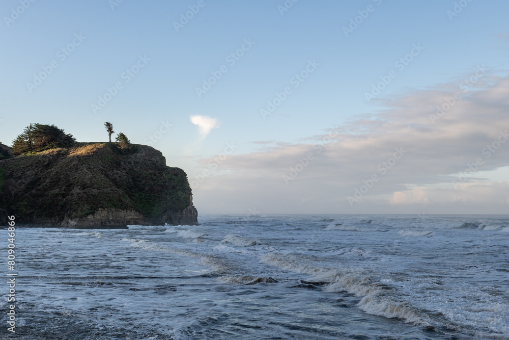 Waves rolling ashore along the coast of the Pacific Ocean in northern California.
