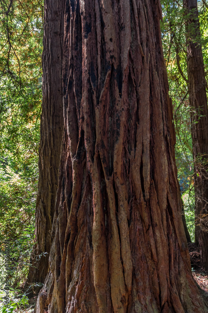 a closer view of the famous Muir Woods mammoth trees in the national monument forest, california