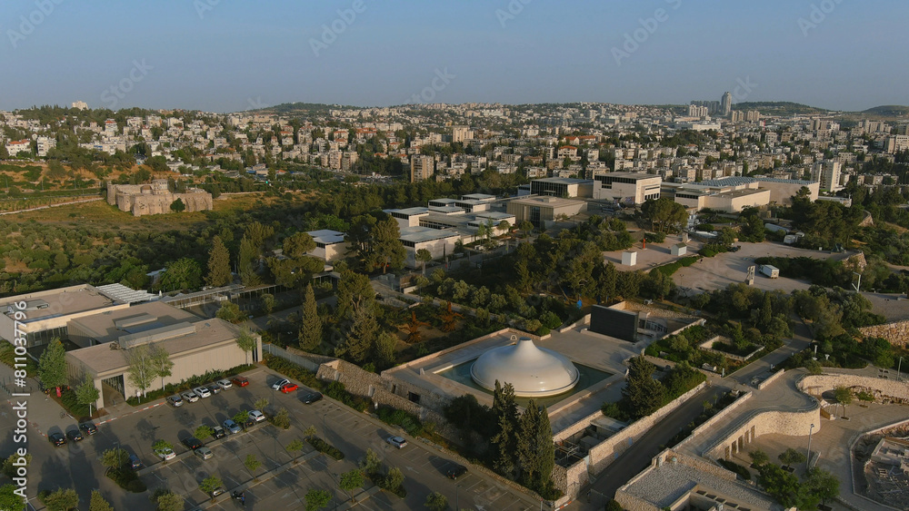Jerusalem,The Israel Museum, aerial view Israel Museum.Shrine of the Book which houses the Dead Sea Scrolls, Jerusalem, Israel, drone,2022
