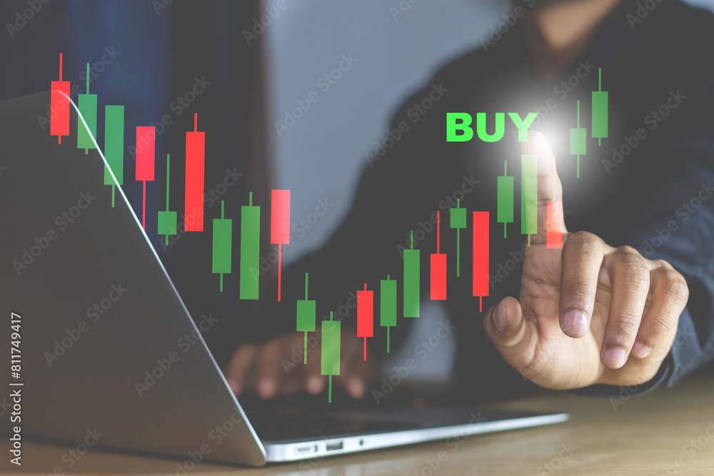 Stock market candlestick chart graph buy and sell concept, professional trader analysing company financial data Quarterly Results profit and loss and balance sheet
