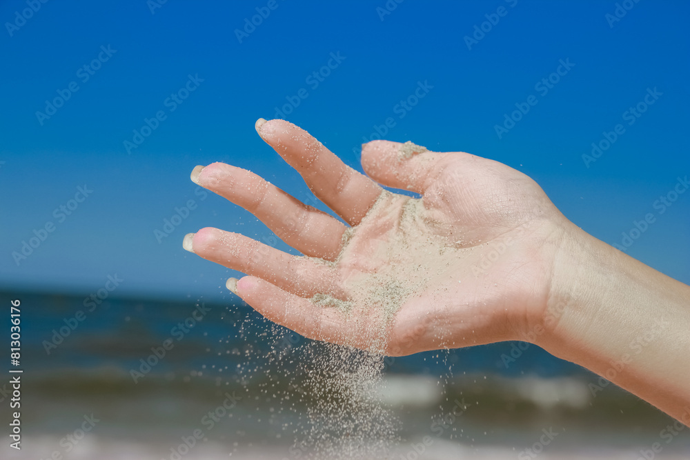 stylish beautiful hands sypyat sand sea summer on the nature