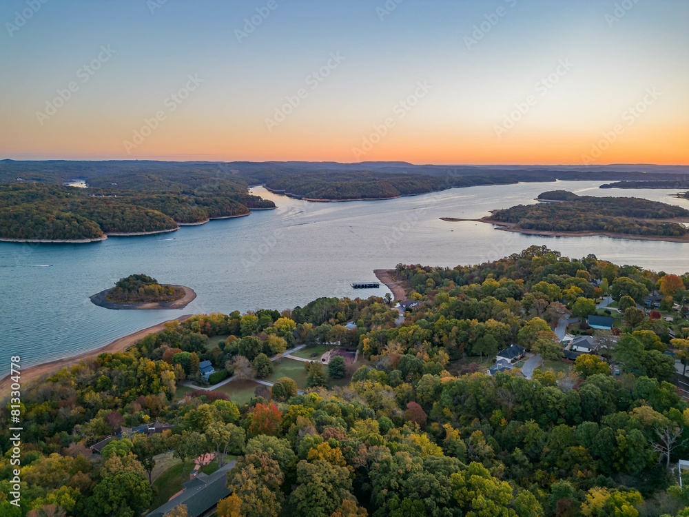 Sunrise aerial view of the Hobbs State Park-Conservation Area landscape