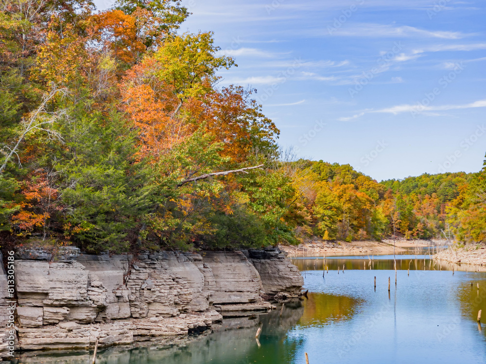 Sunny view of the beautiful fall color of Hobbs State Park-Conservation Area