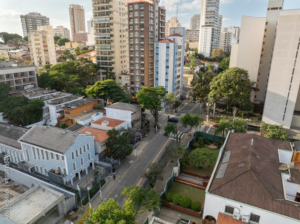 Fotos aéreas diurnas da cidade de São Paulo, com seu arranha-céus e transito intenso