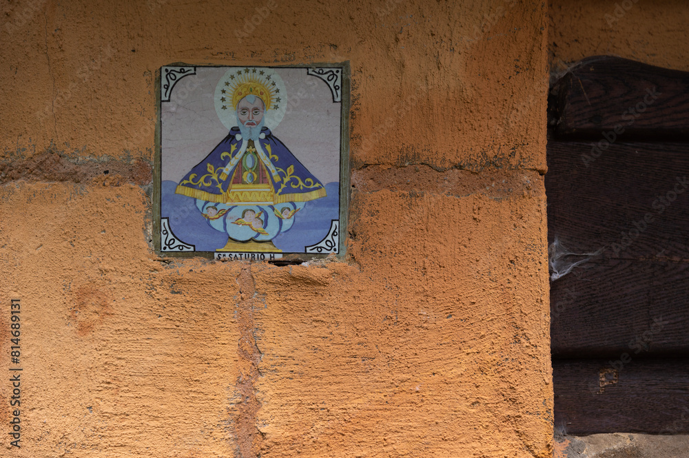 Azulejo con el busto de san saturio en su ermita de la ciudad de Soria, castilla y leon, españa.