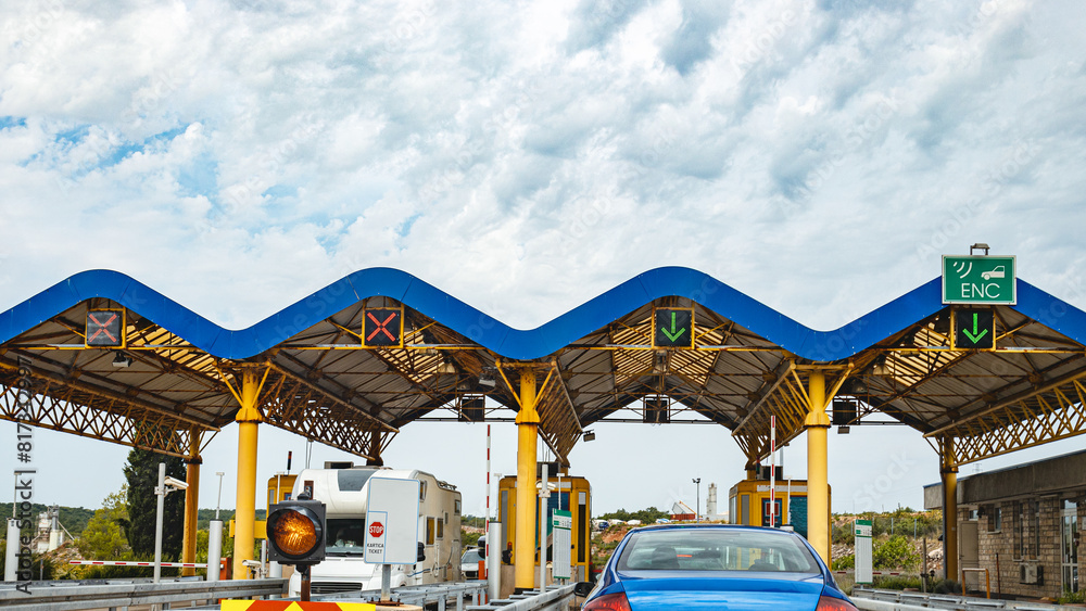 Checkpoint and payment on the toll part of the road, checkpoint on the highway
