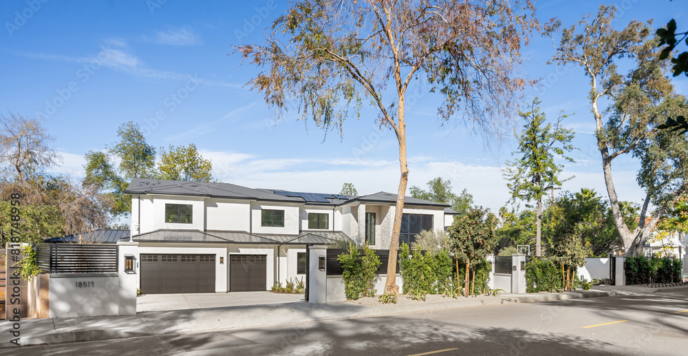 House with a sprawling tree and a spacious driveway, New Construction Home in Tarzana, California