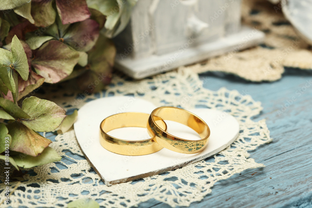 pair of wedding rings on old style background