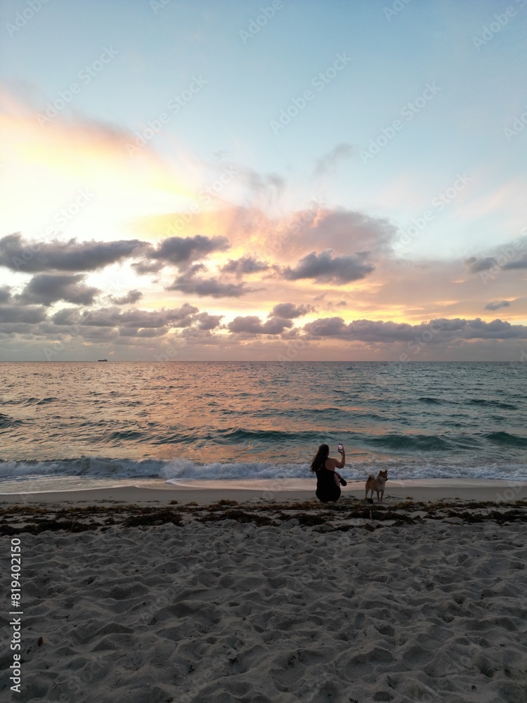 Girl and Shiba Inu on the beach in Miami Beach Florida