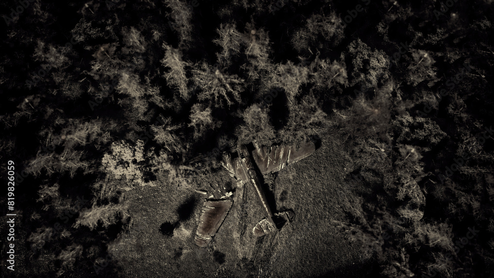 Crashed military plane in the middle of a forest