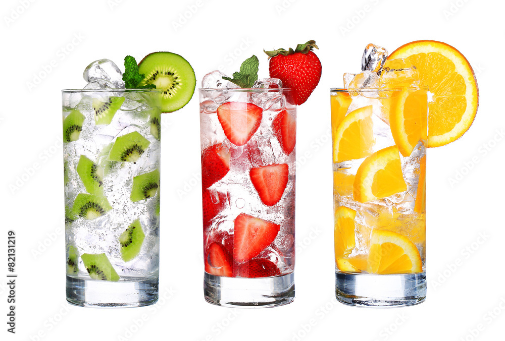 Glass Of Cold fruit Drinks collection isolated on white backgro