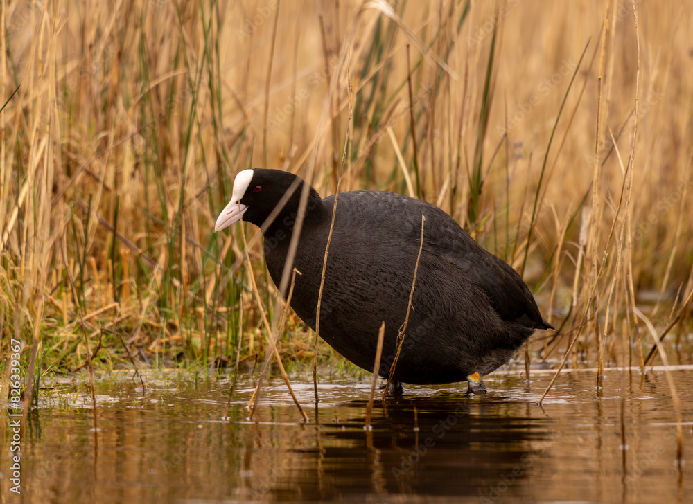 portrait d'une poule d'eau dans son élément, un jour d'hiver