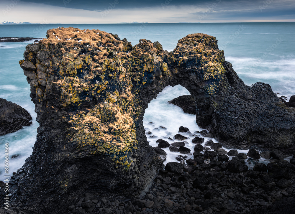 scogliera islandese con la bassa marea, abitata da svariati uccelli marini