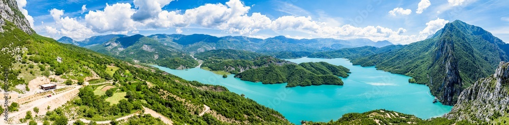 Panorama of Bovilla Lake and Mountains, Bovilla Reservoir, Tirana, Albania, Europe