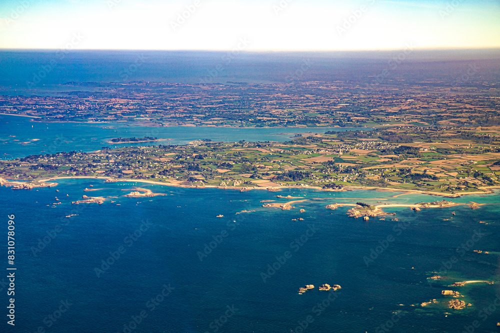 french brittany and atlantc ocean coast in finistere aerial view