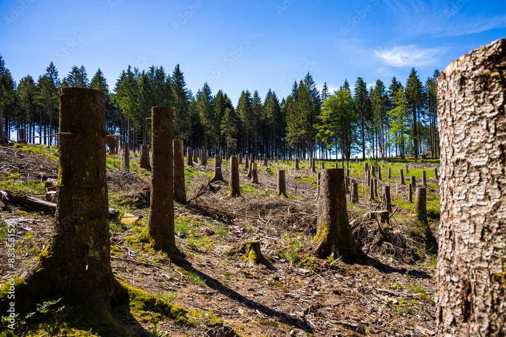 Tree Stumps Due to Pest Infestation Management in the Thuringian Forest, Germany