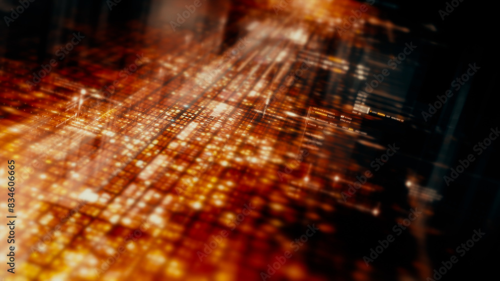 Futuristic screen display matrix, hi-tech digital data telemetry with encrypted numbers, display dynamic background for computer desktop screen display format