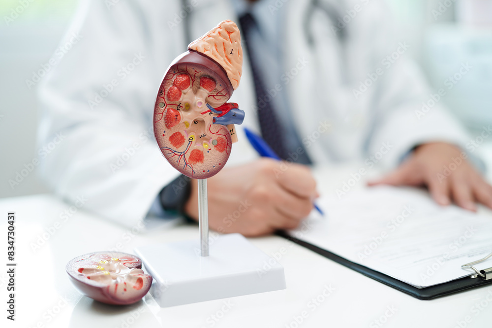 Chronic kidney disease, doctor with model for treatment urinary system, urology, Estimated glomerular filtration rate eGFR.