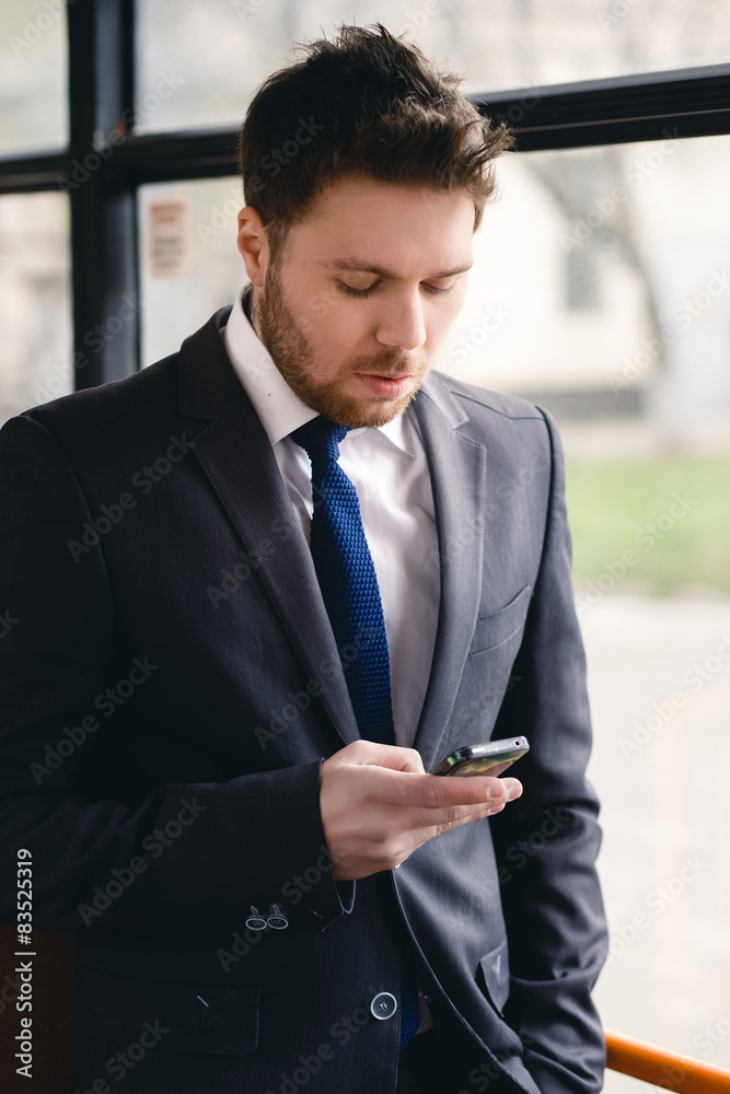 Man Talking on Cell Phone, public transportation