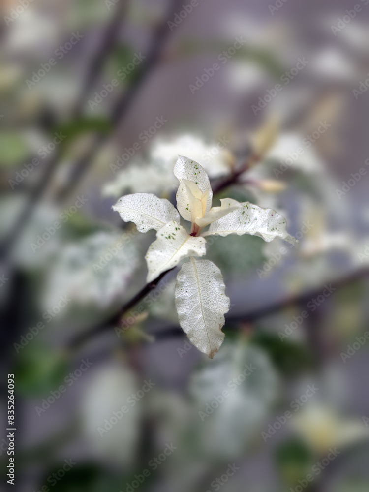 Closeup of new growth on Pittosporum tenuifolium 'Irene Paterson'