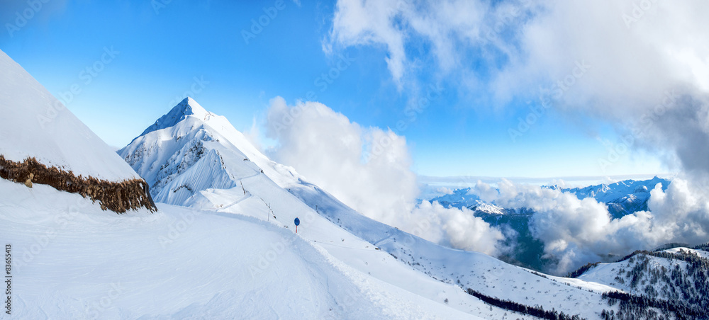 Krasnaya Polyana Sochi mountains snow ski sky descent speed