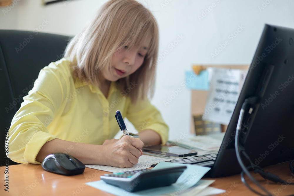 Asian Business woman discussion and analysis data at office